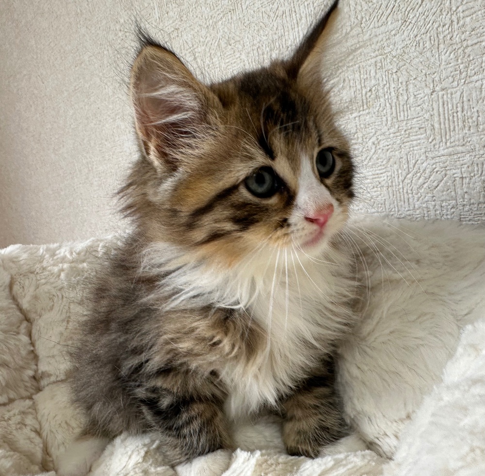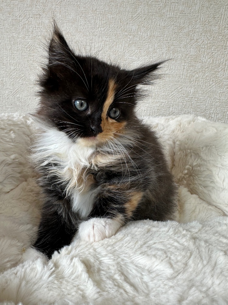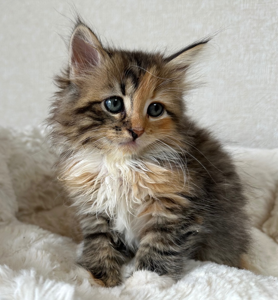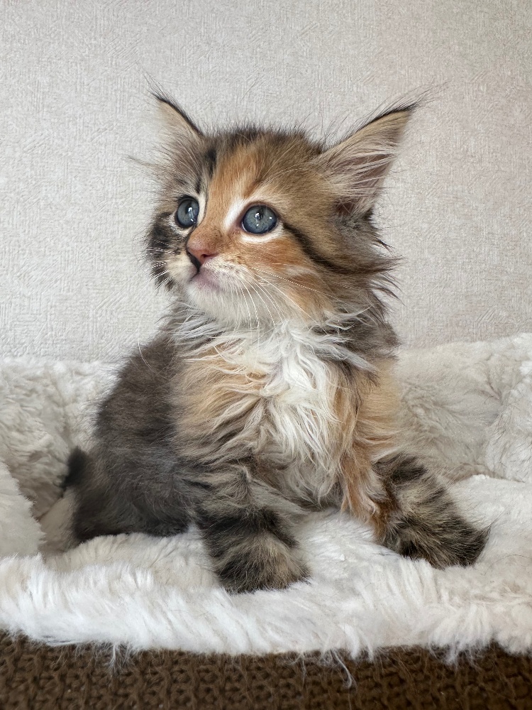 猫 種 サイベリアン毛 色 キャリコ性 別 女の子誕生日 2025年8月17日金 額 238000円 ワクチン代7000円性 格 おとなしい