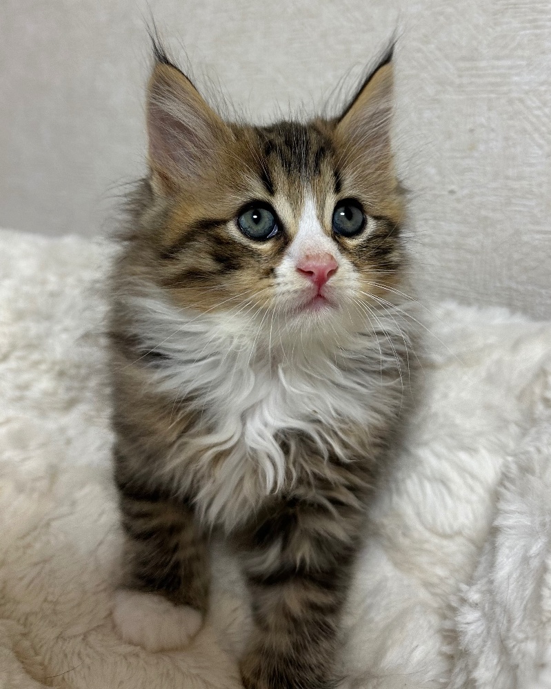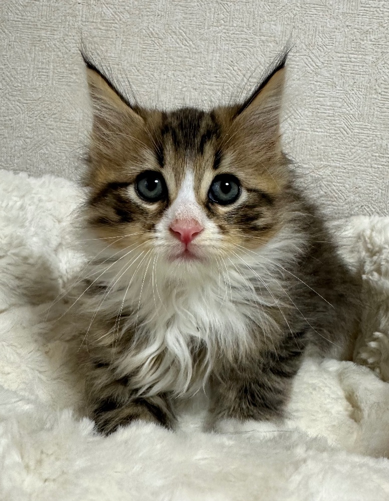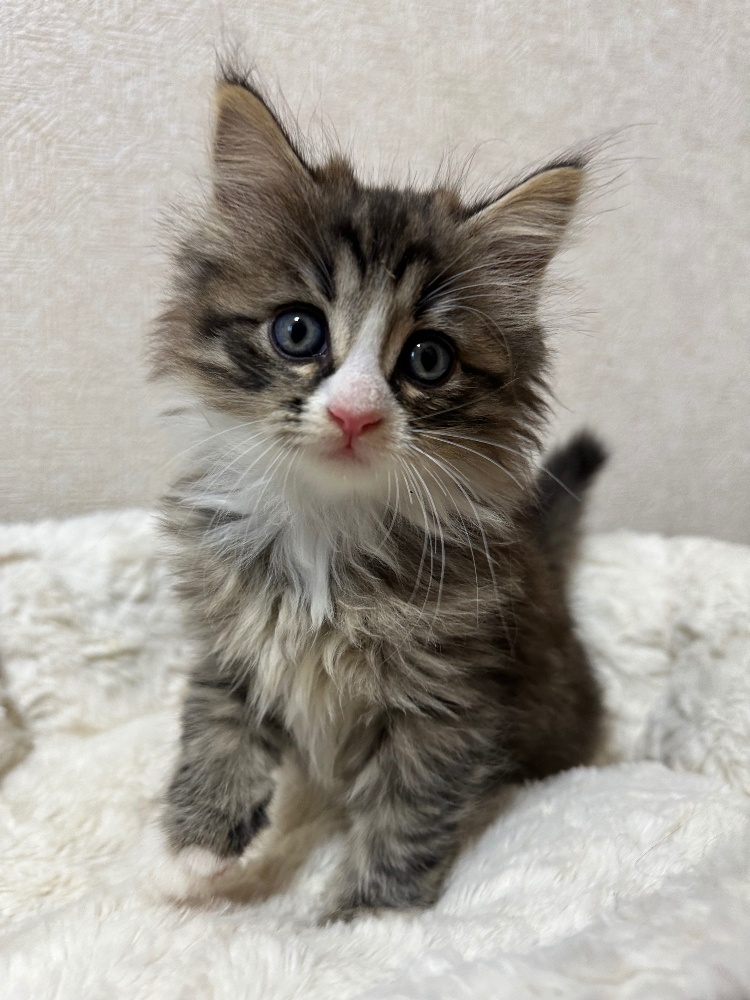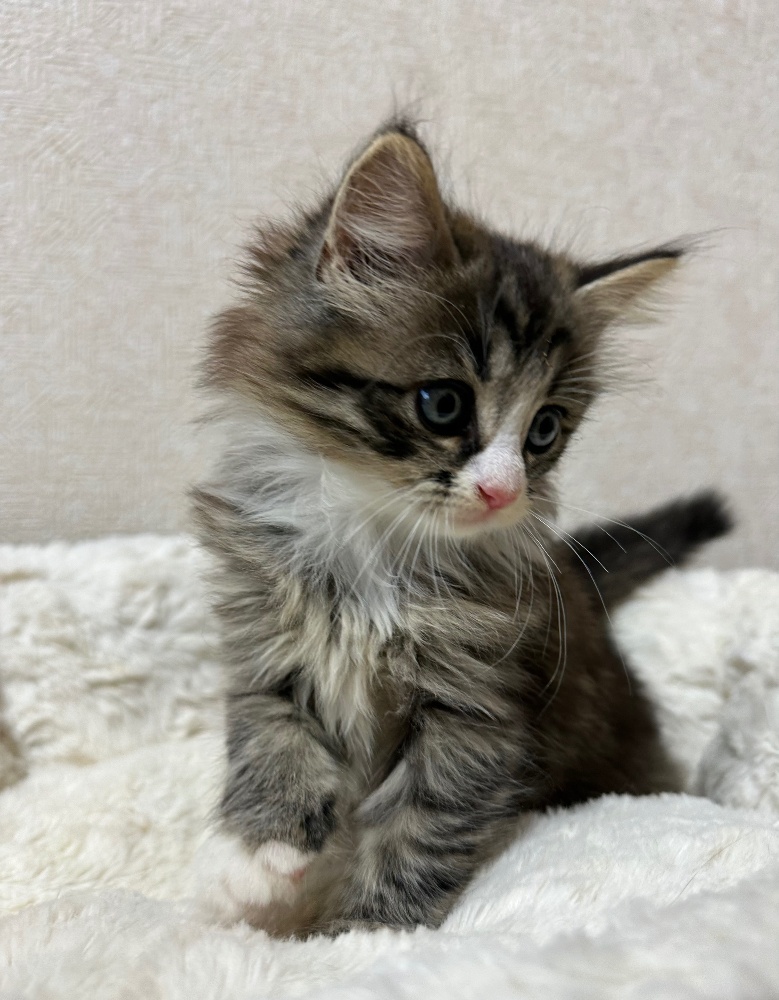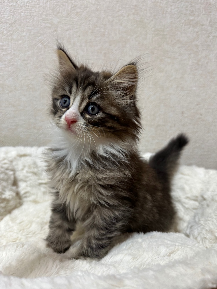 猫 種 サイベリアン毛 色 ブラウンタビー&ホワイト性 別 男の子誕生日 2024年2月2日金 額 ー円