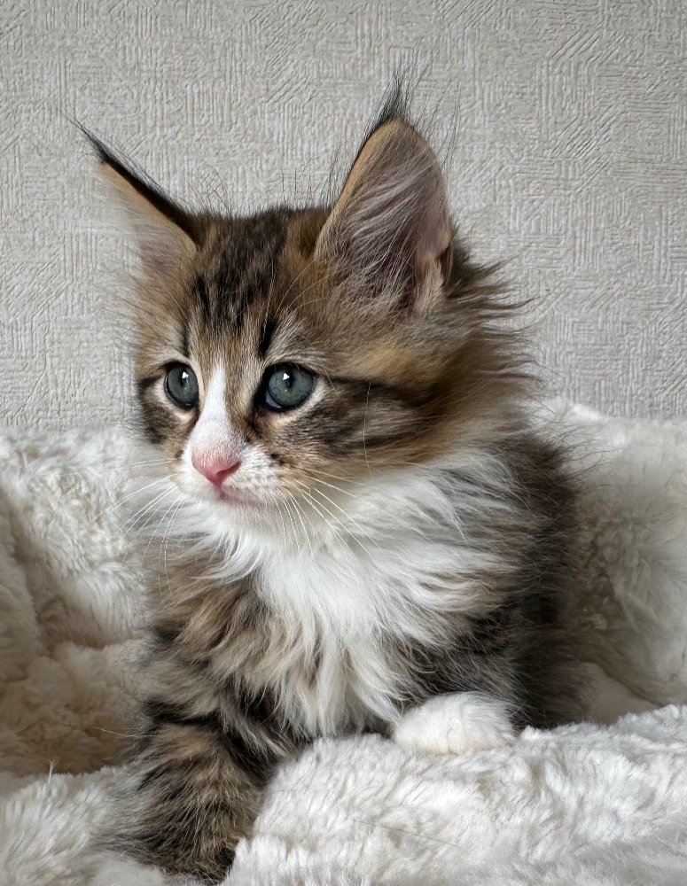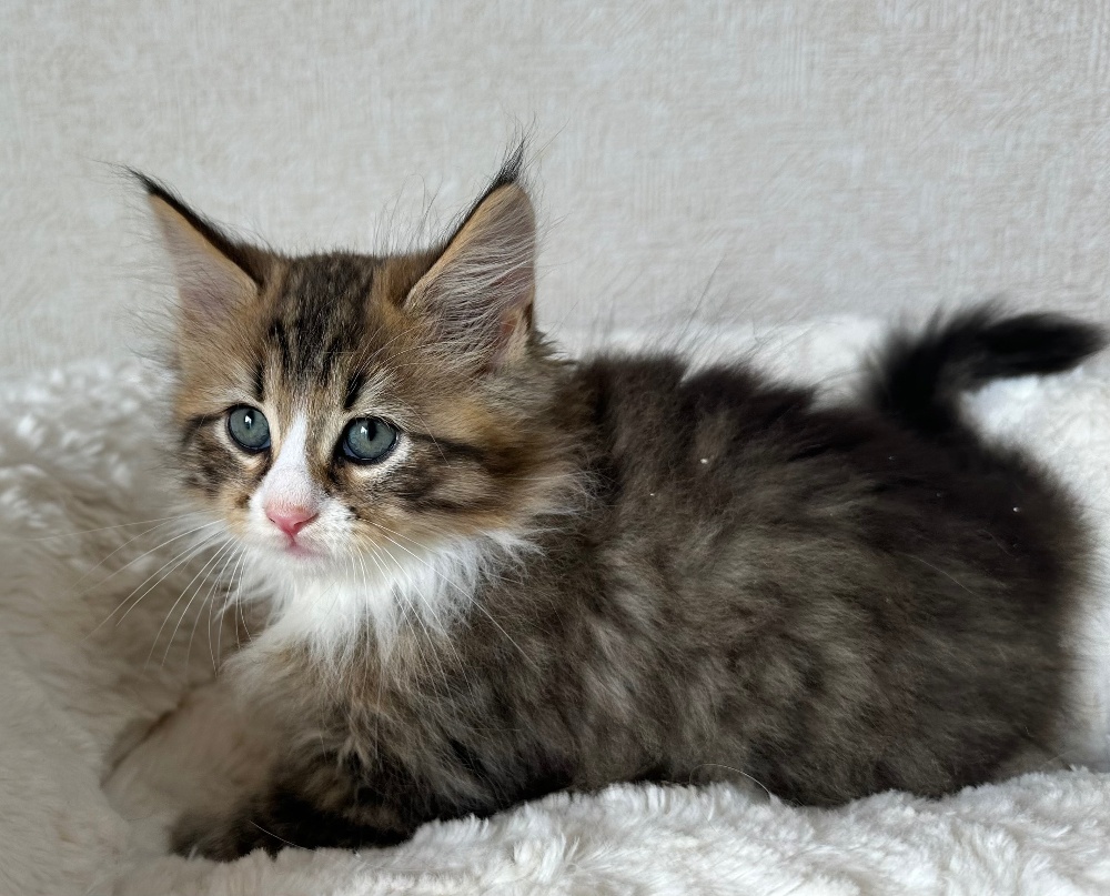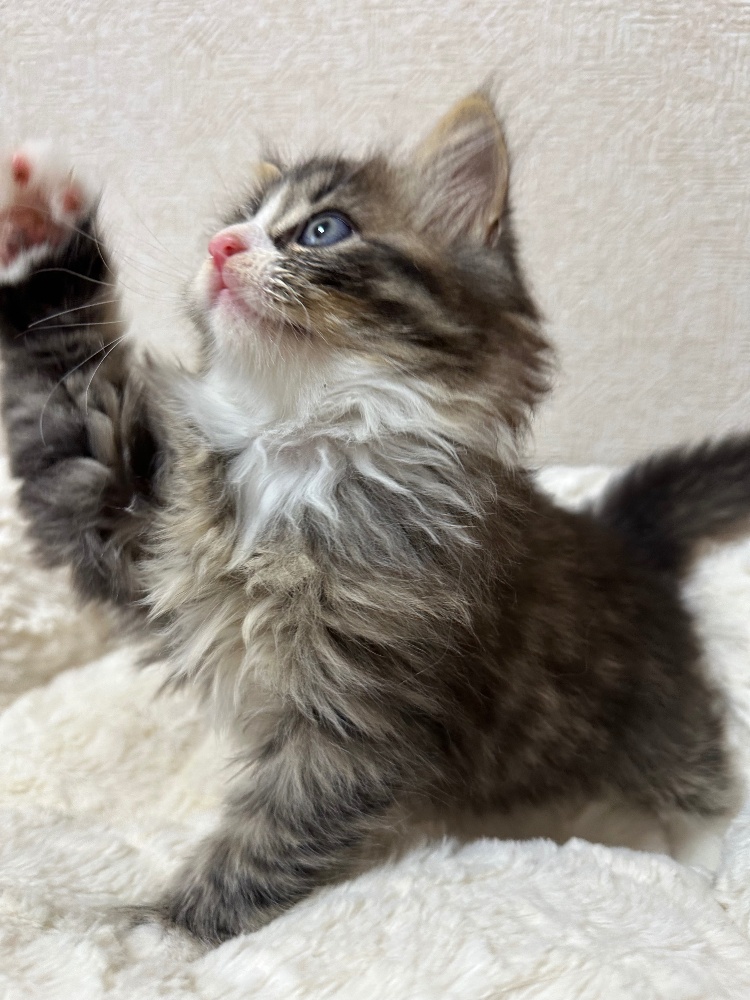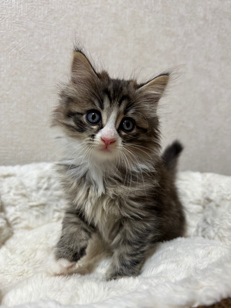 猫 種 サイベリアン毛 色 ブラウンマッカレルタビー&ホワイト性 別 女の子誕生日 2025年7月3日金 額 180,000円 ワクチン代7000円×2性 格 ちょっとイタズラな女の子